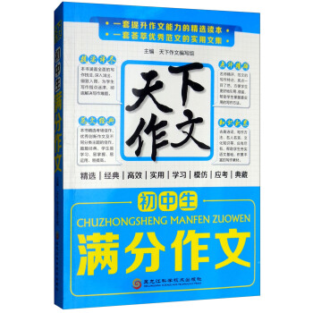 《天下作文:初中生滿分作文》選擇了近年來各種考試中的滿分作文,寫人記事、描景狀物、想象說明,各類文體全涵蓋。每篇文后附有名師的精彩點評,多角度、全方位、立體式的解析例文中的精彩之處,并提煉出作者的寫作技巧,以期給小讀者多重啟發(fā)。