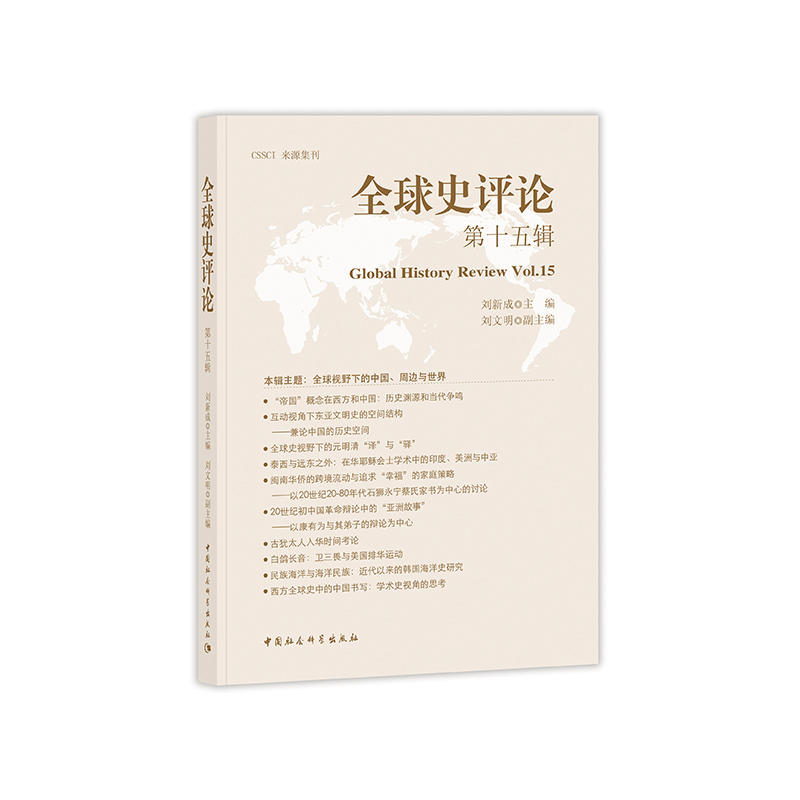 全球史評(píng)論第15輯 《全球史評(píng)論》是首都師范大學(xué)全球史研究中心組稿,專(zhuān)門(mén)為全球史研究提供交流平臺(tái)的學(xué)術(shù)性論文集。由我國(guó)著名世界史專(zhuān)家齊世榮教授和美國(guó)世界史學(xué)會(huì)前主席、《世界歷史雜志》(Journal of World History)主編、夏威夷大學(xué)歷史系教授、國(guó)際著名全球史專(zhuān)家杰里·本特利(Jerry H. Bentley)教授擔(dān)任學(xué)術(shù)顧問(wèn),總主編劉新成。為促進(jìn)國(guó)內(nèi)的全球史研究與教學(xué),并形成品牌效應(yīng),全球史研究中心于2008年開(kāi)始著手編輯出版《全球史評(píng)論》,收錄國(guó)內(nèi)外學(xué)者有關(guān)全球史方面的學(xué)術(shù)論文和相關(guān)的學(xué)術(shù)信息。其內(nèi)容目前包括全球史理論與方法全球史專(zhuān)題研究全球史/世界史教學(xué)學(xué)人評(píng)介書(shū)評(píng)學(xué)術(shù)動(dòng)態(tài)等。